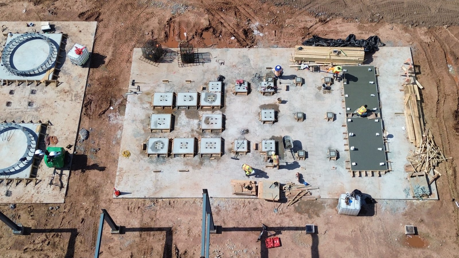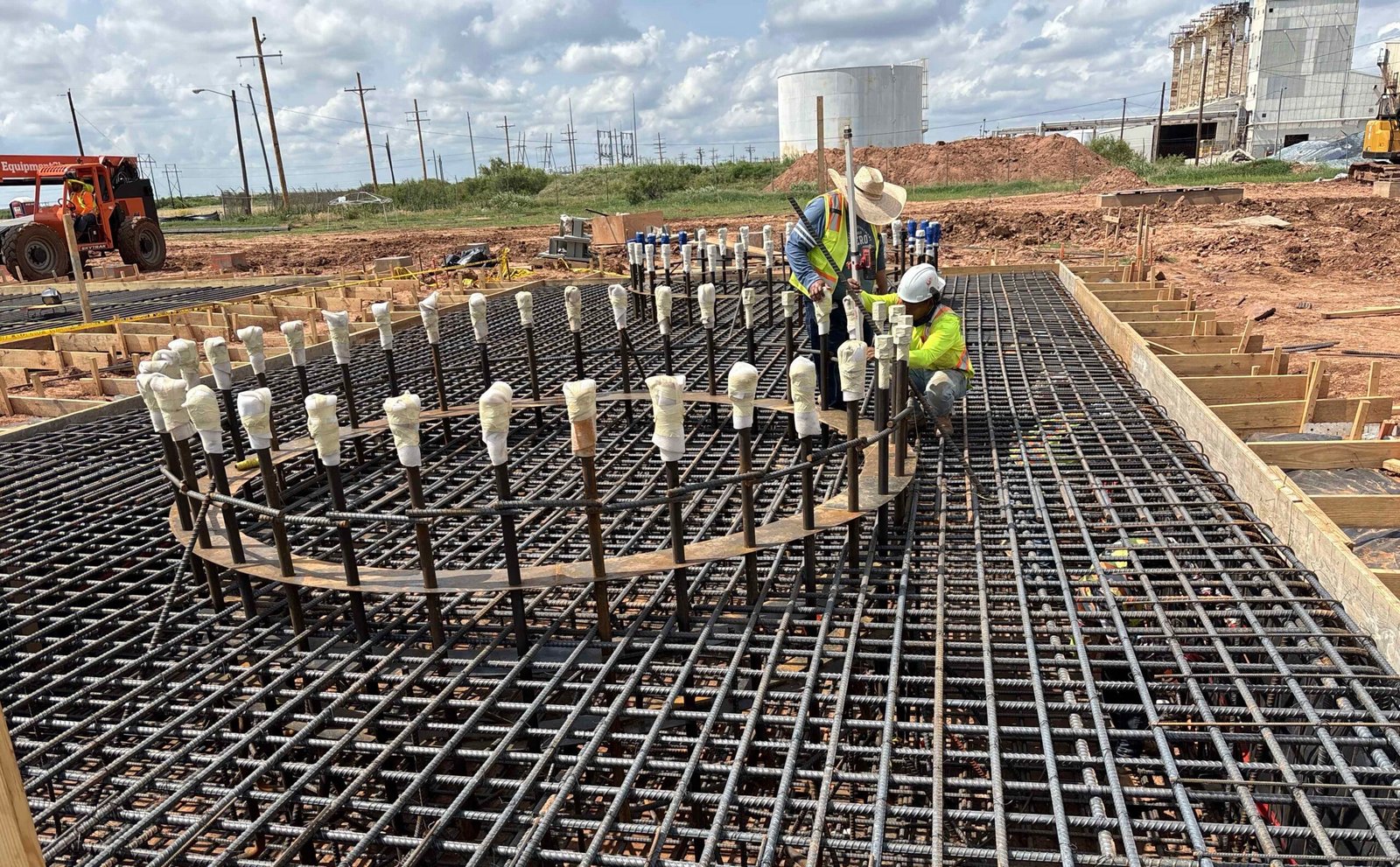 Management of engineered rebar fabrication, pedestals, and massive concrete foundations.